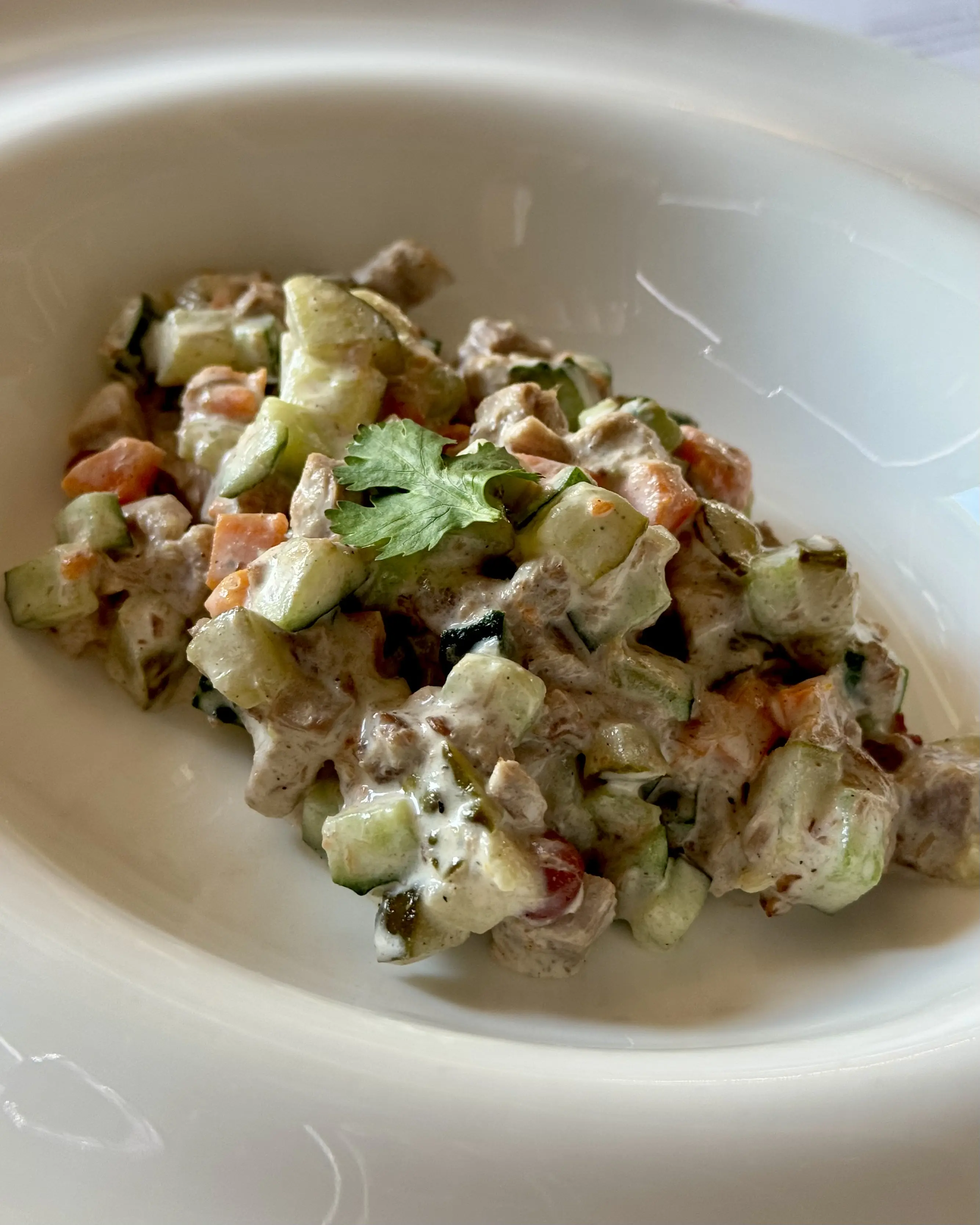 Салат с говядиной, огурцами и консервированной фасолью