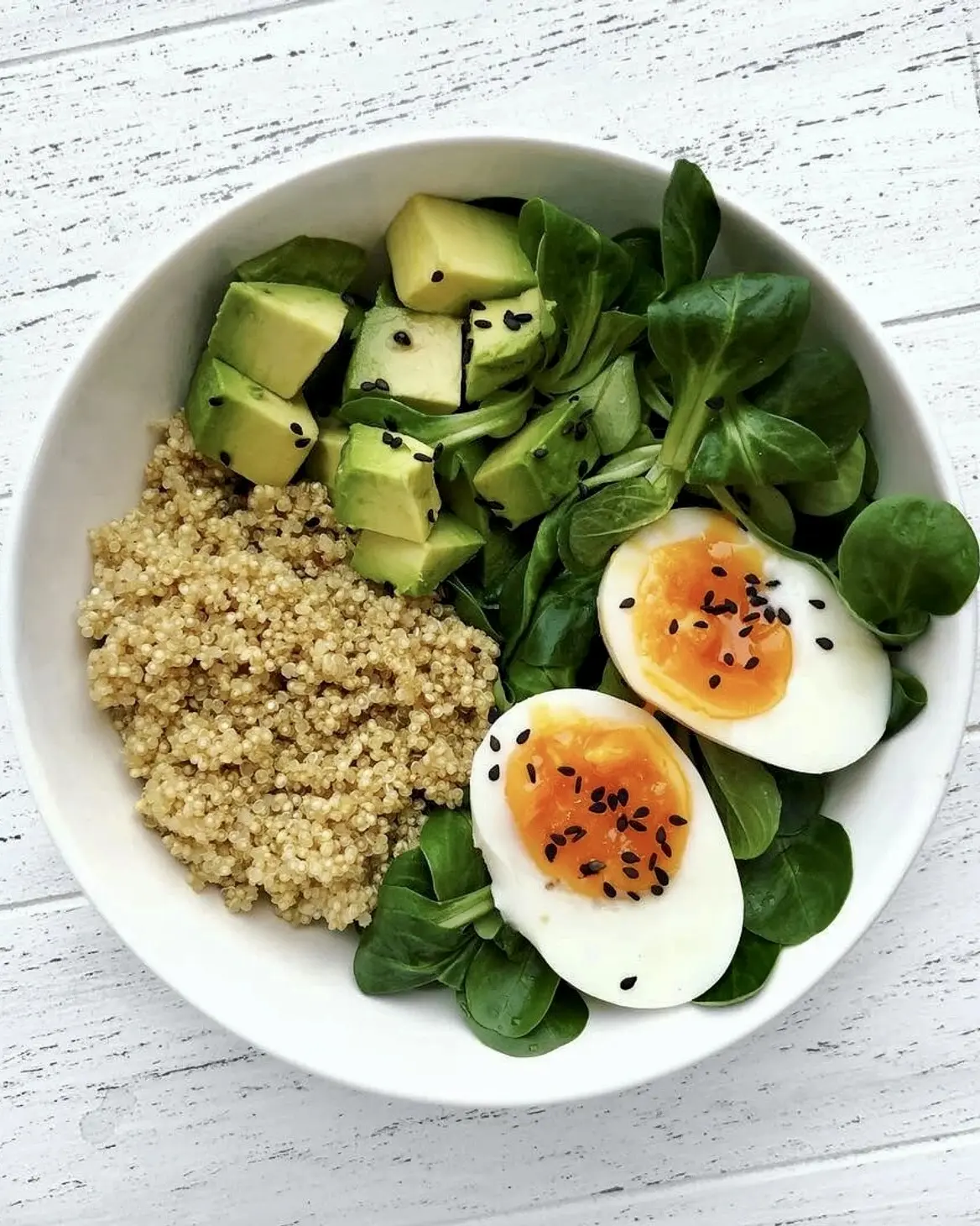 Обед с киноа, яйцом и авокадо