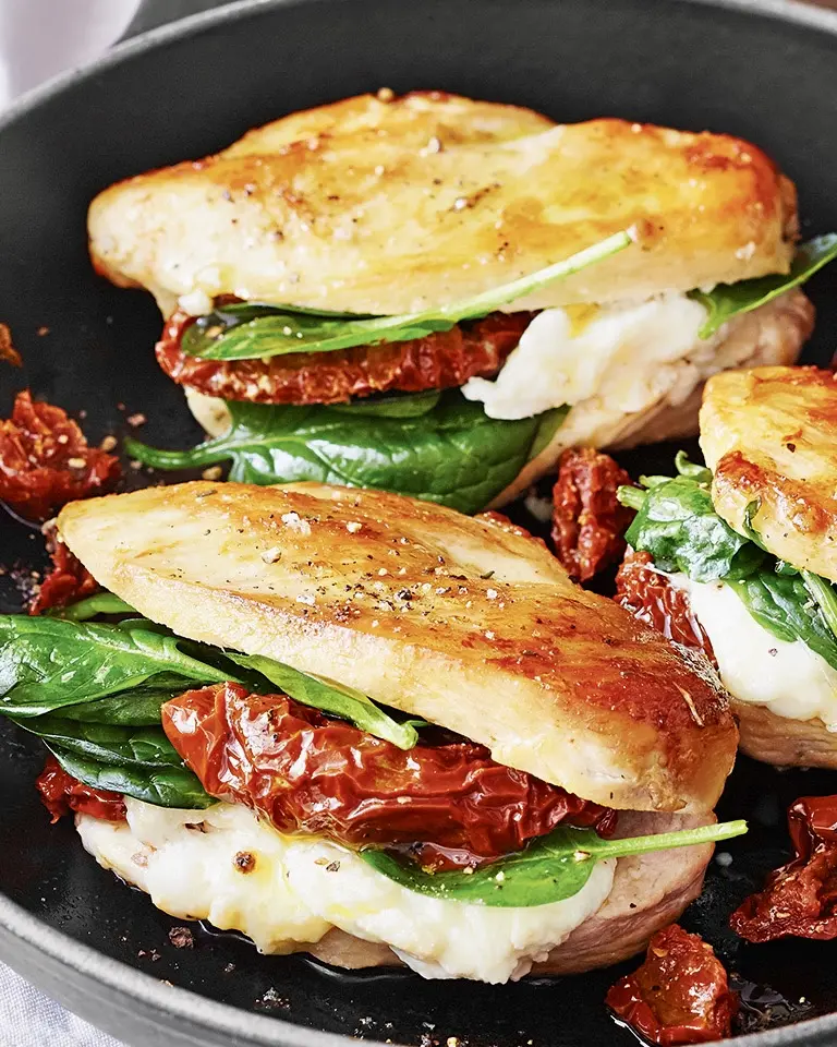 Кармашки из курицы с вялеными томатами и сыром