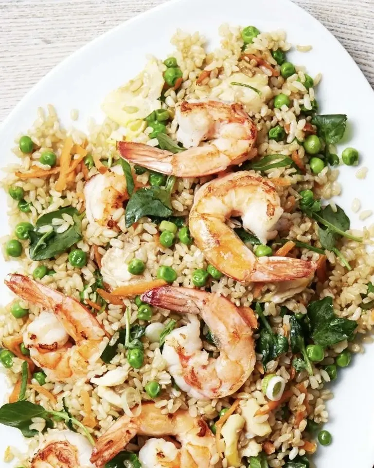Креветки с рисом и зелёным горошком