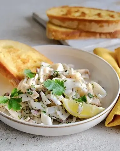 Салат с кальмаром и красным луком